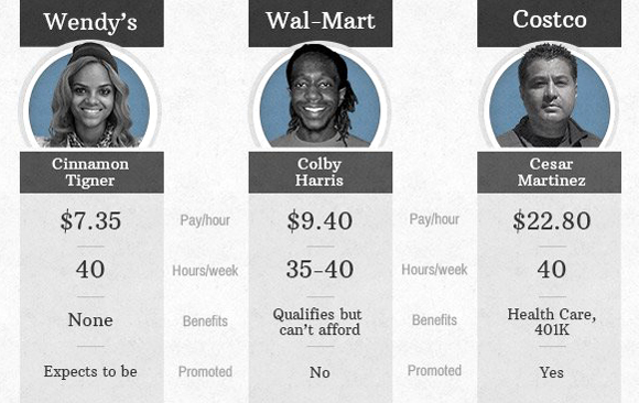 Worker wages: Wendy’s vs. Wal-Mart vs. Costco
